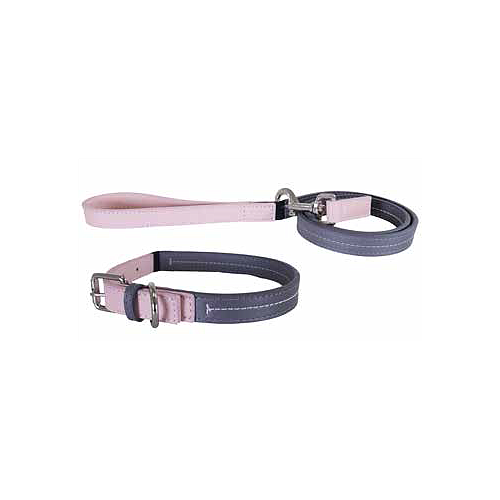 Baby Pink/Grey Leather Collar 10-14"